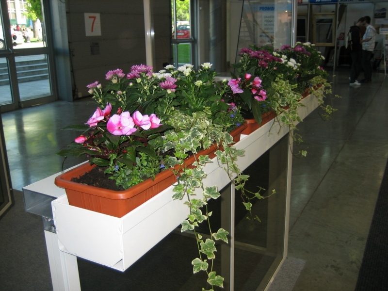 Flower Pot Rack A flower pot rack made of aluminium sheet can be attached to the aluminium railing. Dimensions and colour schemes are entirely up to the customer’s individual requirements.